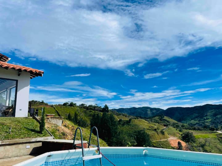 נוף להרים ב -180 מעלות עם בריכה בגודל טוב