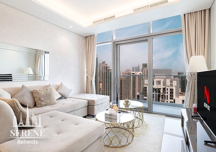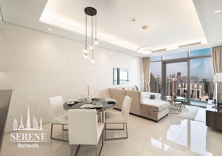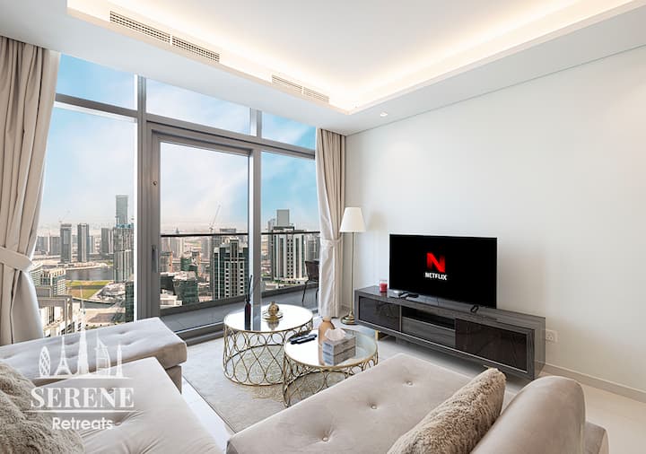 ברוכים הבאים לדירת שני חדרי שינה מפוארת ב - Serene Retreats במפרץ העסקים שמציעה נופים מדהימים של בורג' ח'ליפה.