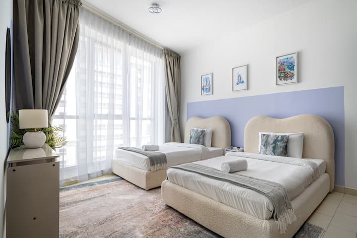נוף למרינה, לפאלם וגלובאל ולשקיעה מ-3 מיטות מדהימות