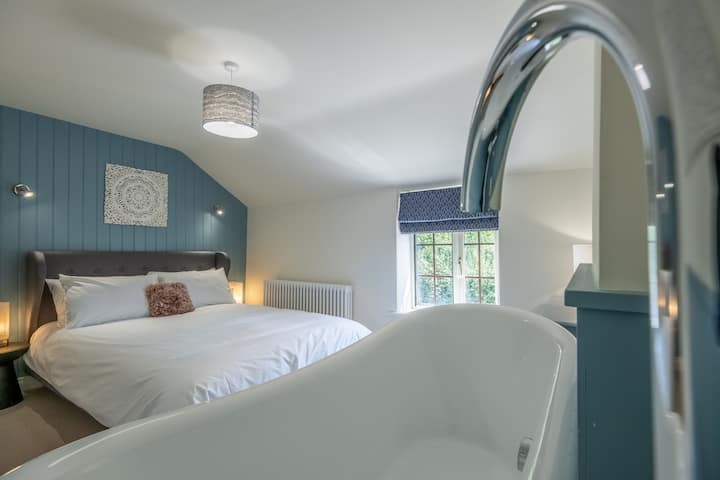 למעלה, חדר שינה ראשי מאובזר להפליא עם מיטת קינג סייז עם מצעים לבנים משובחים. ובשביל הניוון האולטימטיבי, אמבטיה עצמאית יושבת ליד החלון כדי לראות את הנופים בזמן שאתם מאטים ונרגעים. מעבר לנחיתה, חדר השינה השני מציע מיטת יחיד בגודל 3' ונהנה מנוף לגינה וחלון Velux לצפייה בכוכבים. שני החדרים האלה מוגשים על ידי מקלחת עם מקלחון.