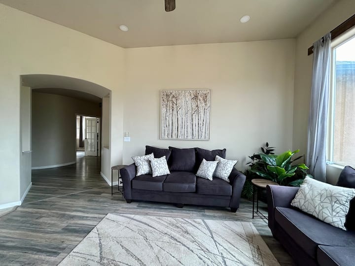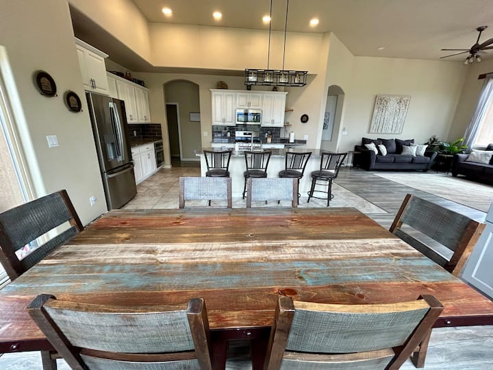 ברוכים הבאים ל - Desert Rose, מקום מפלט מדברי מפואר המשתרע על פני 23 אקרים, שבו נפגשים הרפתקאות ואלגנטיות! הבית המדהים הזה עם 4 חדרי שינה כולל חלונות רחבים שמציגים נופים עוצרי נשימה, ואילו הסוויטה הראשית מציעה מפלט דמוי ספא עם אמבטיה טבולה ומקלחת מפוארת. תיהנו מהבקרים שלכם בבר הקפה ושכלל את הנדנדה שלכם בהתאמה אישית עם ירוק. עם חניה בשפע לטרקטורונים ולקרוואנים, בתוספת מסלולי רכיבה וטיולים רגליים גדולים בקרבת מקום, Desert Rose הוא מקום המפלט האולטימטיבי שלכם!