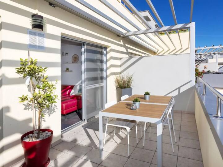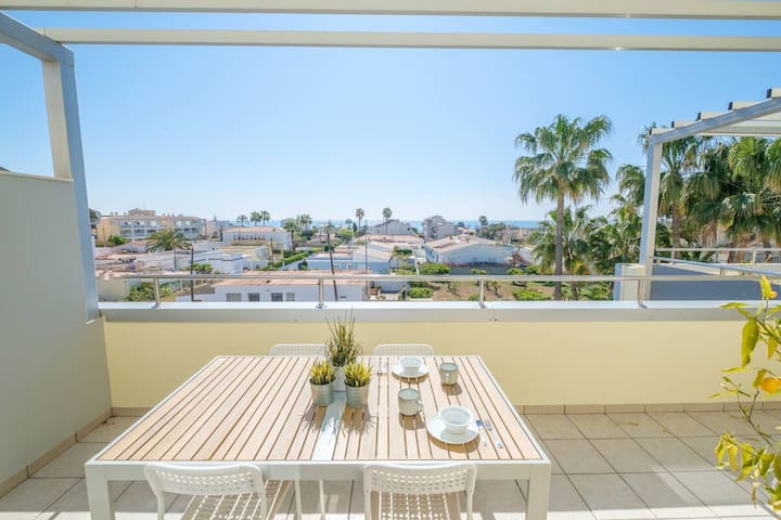דירה שטופת שמש בים עם בריכה