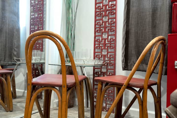 היכנסו למקום מפלט פריזאי עם הסטודיו שלנו בנושא מולן רוז', שבו רומנטיקה וזוהר מתעוררים לחיים. הנכס מעוטר באדומים קטיפתיים עשירים, דגשי זהב מפוארים ופרטים שחורים אלגנטיים, שמצלמים את המהות של קברט פריזאי וינטג'. מיטה מפוארת עם מצעים מפוארים הופכת למרכזה, ואילו מנורות בסגנון וינטג' מטילות זוהרות וחמימות על פני החדר. מראות מקושטות, וילונות תיאטרליים ופוסטרים אמנותיים מעוררים את הקסם הבוהמי של מונמארטר. ליהנות מנוחות מודרנית בחלל שחוגג את הרוח של מולן רוז', מושלם לשהייה קסומה שהיא גם מסוגננת וגם בלתי נשכחת.
