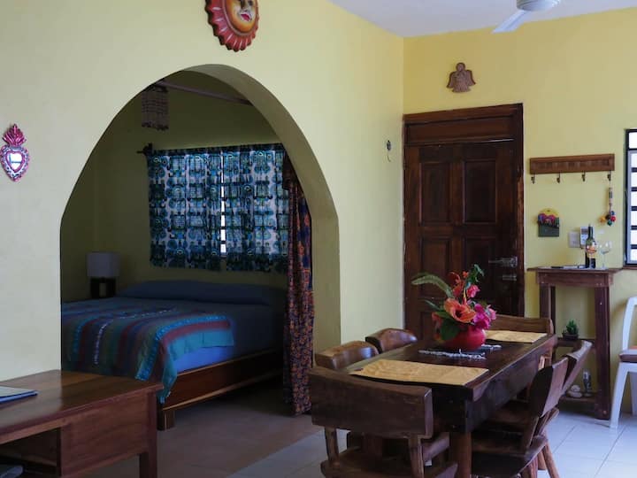 Casa Esmeralda הוא מקום יפהפה הממוקם ממש על Cenote Esmeralda ב-Laguna Bacalar, אגם שבע הצבעים. *חדש* מיזוג אוויר! הבית הראשי הוא בית עם חדר שינה אחד עם מטבח מלא בכל מה שתצטרכו כדי לבשל, להכין משקאות, ליהנות מחטיפים וליהנות. בקאסה יש מיטת קינג סייז נוחה ומיטת יחיד בסלון, חדר רחצה עם מקלחת גדולה. הקסיטה היא סטודיו עם מיטת קווין סייז, מטבחון וחדר רחצה עם מקלחת. גם בקאסה וגם בקסיטה יש מרפסת מקורה, והן פרטיות זו מזו עם כניסות נפרדות. אפשר לשחות וליהנות ממימי סנוטה אסמרלדה ממש ליד המזח המכוסה בפלפה, להירגע בערסל ולצפות בסירות המפליגות, לצאת לקיאקינג סביב אי הציפורים. רציף פרטי לשחייה, שיזוף ומנוחה. מקום חניה מקורה מחוץ לרחוב בחצר הסגורה.