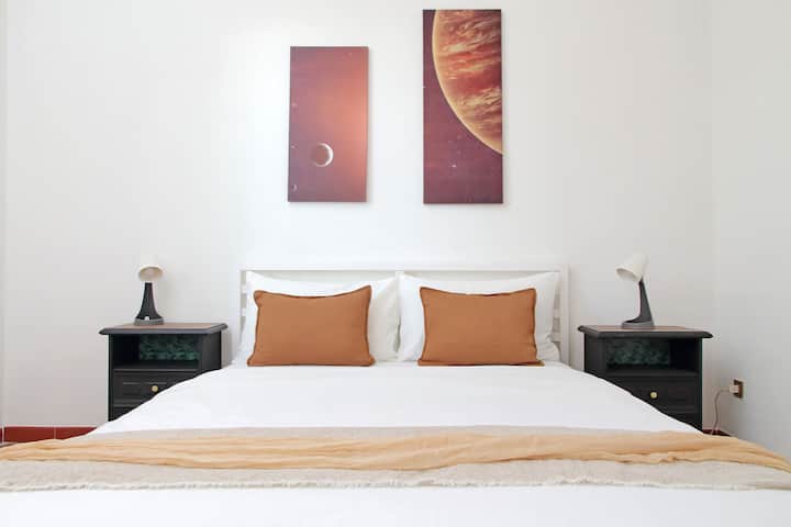 1 מיטה זוגית רחבה, 1 ספה נפתחת
