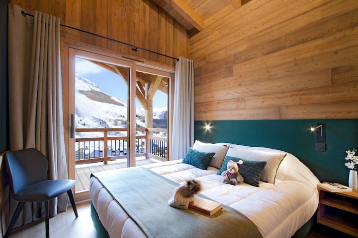• דירה בסגנון בקתה אלפינית זו ממוקמת בקומה הראשונה של בקתה אלפינית יוקרתית הפונה לדרום - מערב.