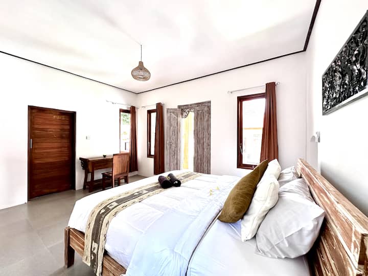 שני חדרי השינה מרווחים ומעוצבים באלגנטיות, כל אחד עם מיטת קינג סייז עטופה במצעים רכים. 2 חלונות מאפשרים הרבה אור טבעי, ואילו ריהוט העץ הכפרי ויצירות האמנות המסורתיות מוסיפים מגע של קסם באלינזי. בכל חדר שינה יש חדר רחצה צמוד עם מקלחת גשם.