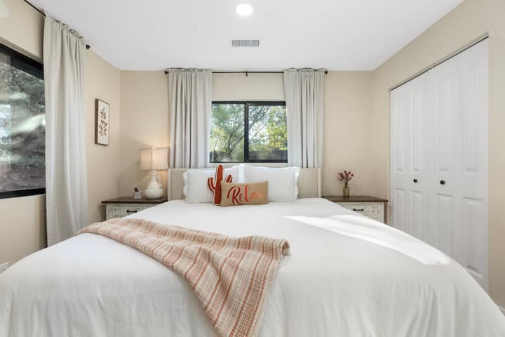 במרכז מערב סדונה, 1549 רגל רבוע של בית שליו ומשופץ להפליא שוכן בתוך הסלעים האדומים, ונותן תחושה כאילו חיבקו אתכם שמש הטבע של סדונה. להתענג על השלווה של הסביבה השלווה או לצאת לסיור. ברגל, ברכב או באופניים - תהיו במרחק הליכה קצרה ממסלולי הליכה, קניות, מסעדות וכל האטרקציות שהופכות את חוויית רד רוק לבלתי נשכחת.