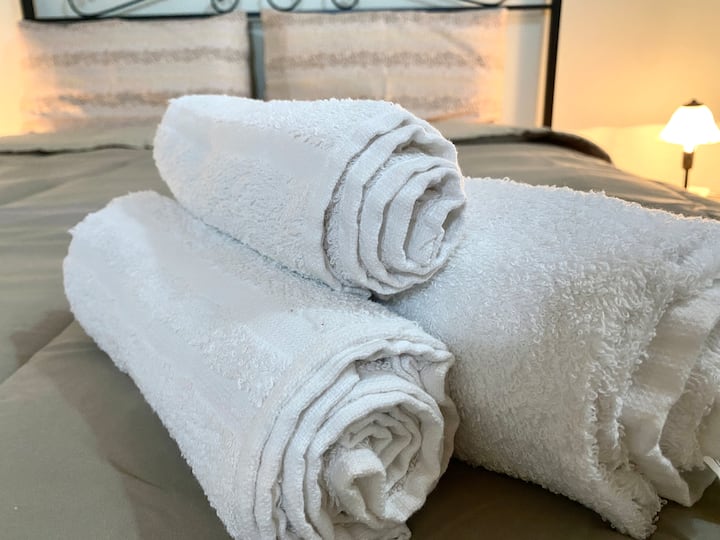 - 3 מגבות טרי רכות (מגבת גוף, מגבת ידיים/פנים, מגבת בידה)