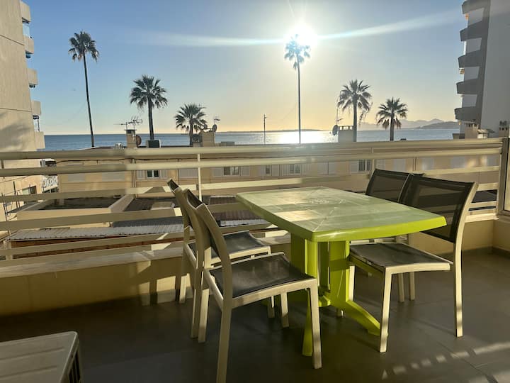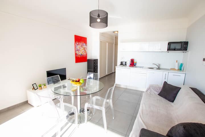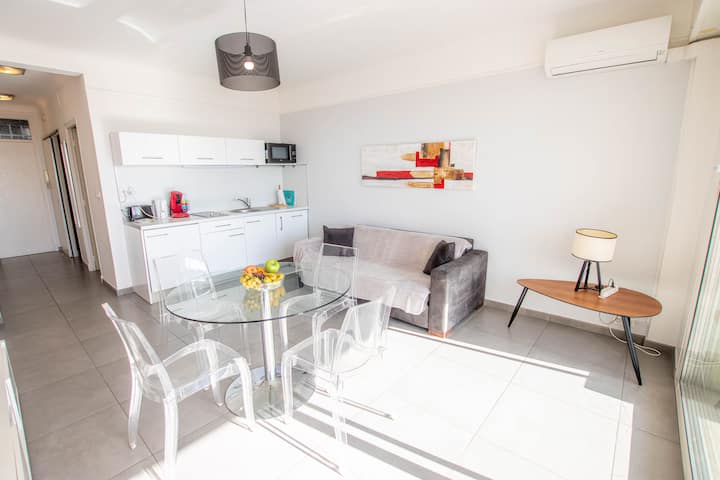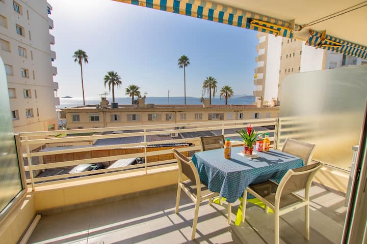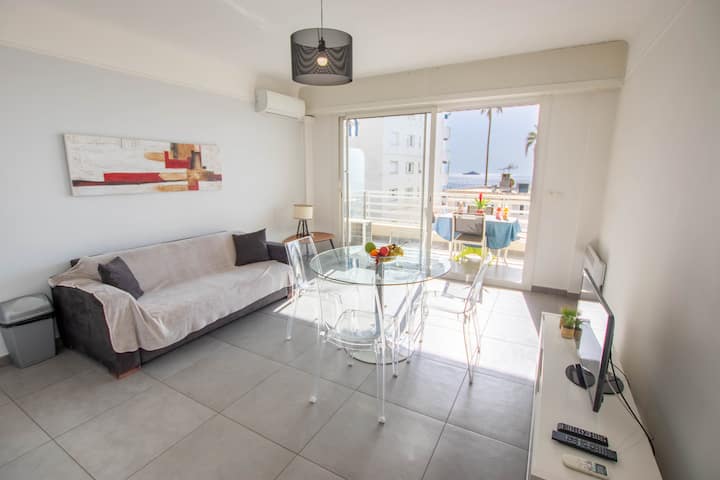 דירת T2 מרהיבה עם נוף לים וחניה, מיזוג אוויר, ז'ואן-לה-פן