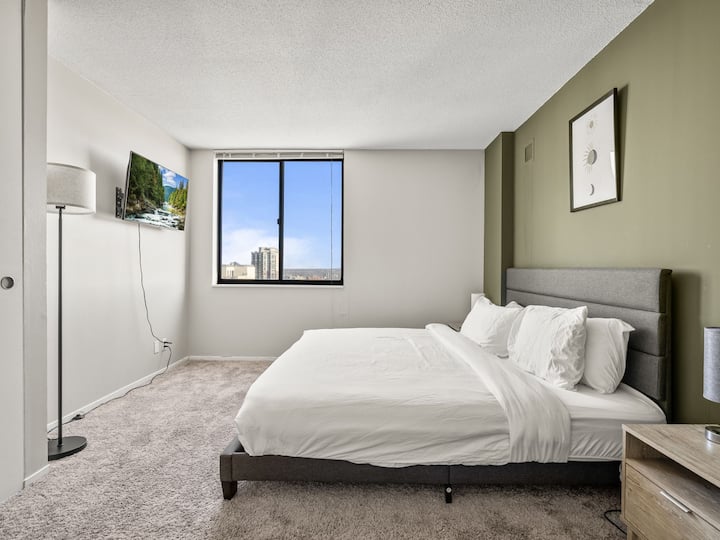 חדר שינה: מפלט לחדר השינה השלו, שבו ממתינה מיטת קווין סייז מפוארת, המעוטרת במצעים הטובים ביותר. המלתחה המעוצבת בקפידה מספקת שפע של מקום לחפצים שלכם.