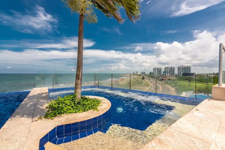 בריכת אינפיניטי עם נוף לים הקריבי בקרטחנה דה אינדיאס