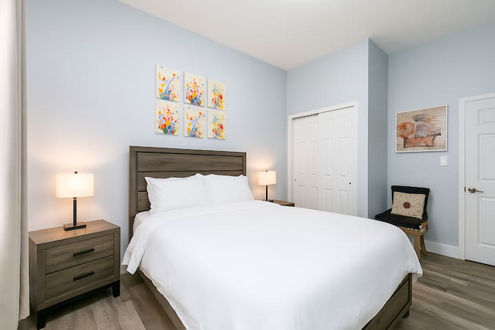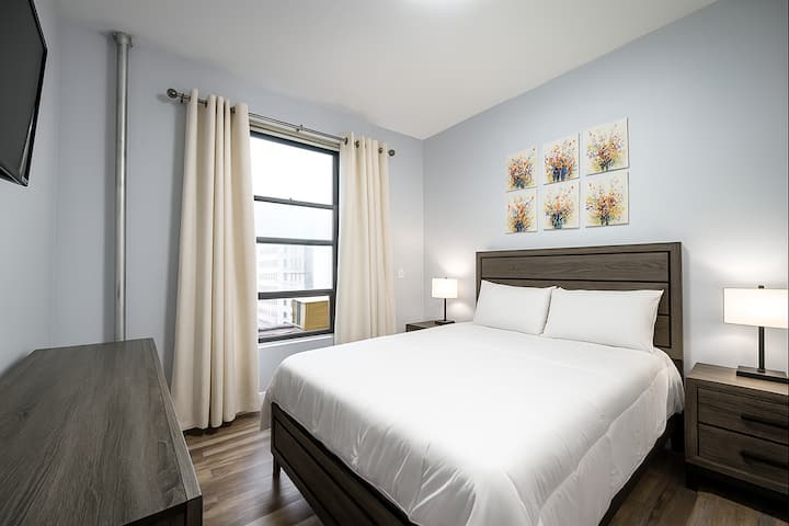 בתוך חדר השינה שלכם תמצאו מיטת קווין סייז עם מזרן נוח, ארון גדול, כיסא וטלוויזיה חכמה 42 אינץ' לסטרימינג. הדירה אידיאלית לאורחים שרוצים מקום נקי ומרגיע להירגע אחרי יום ארוך בעיר. הבניין מאובטח, מתוחזק היטב ומציע חיבור Wi-Fi חזק בכל פינה.