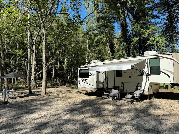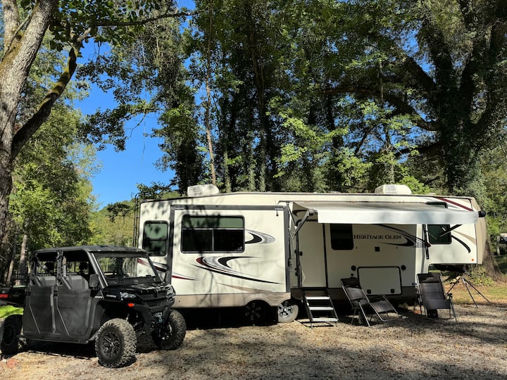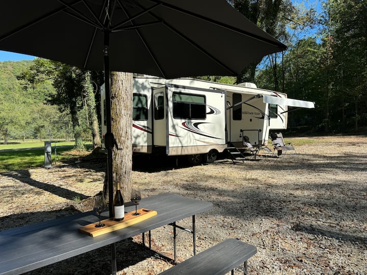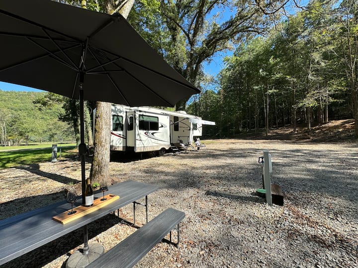 קאמפ סרניטי RV | Creekside Bliss | מדורת גן