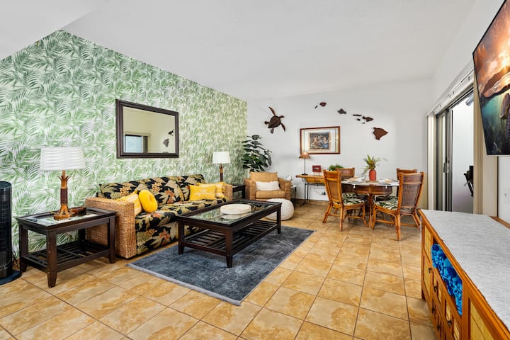 תוכלו ליהנות בהוואי בסלון הטרופי עם ספה גדולה עם הדקלים מול טפט דקל מרגיע ושולחן קפה. מושלם לתכנון יום ההרפתקאות הבא שלכם, לשחק משחק קלפים או לטעום חטיפים מקומיים תוך כדי צפייה בטלוויזיה עם מסך שטוח גדול. הספה המרווחת הזו הופכת לספה נפתחת. לארוחות רשמיות, יש מקומות ישיבה לארבעה אורחים בתוך שולחן האוכל.