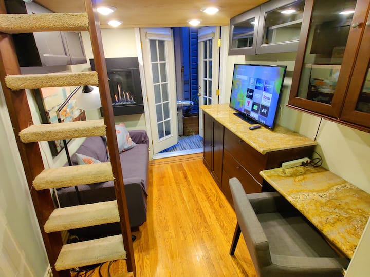 מיטת לופט קטנה וחכמה עם חדר רחצה פרטי