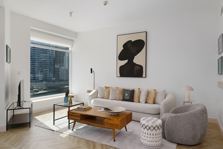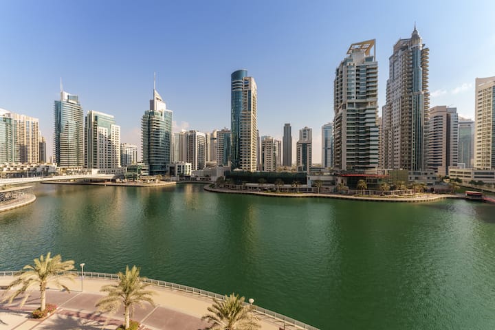חיים מאושרים עם נוף למרינה של דובאי
