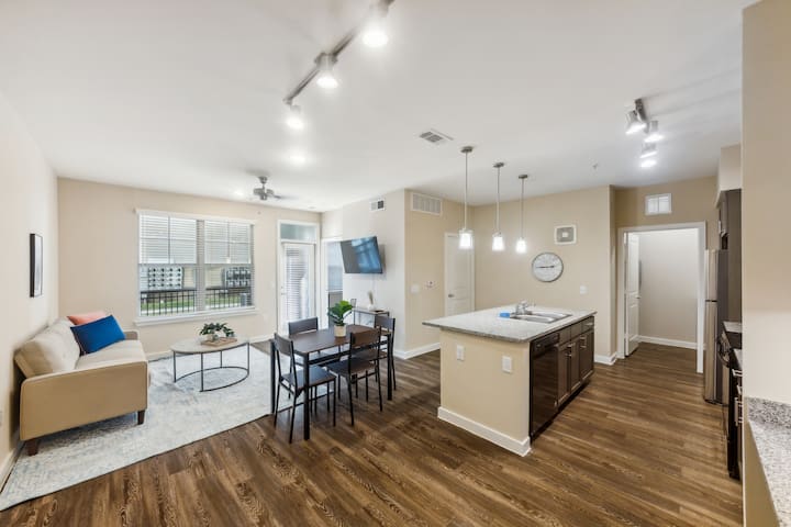 דירת חדר מרוהטת עם חדר שינה אחד וחדר רחצה אחד, מציעה נוחות מודרנית בדרום יוסטון, דקות מפרלנד. תוכלו ליהנות ממטבח מרווח עם משטחי גרניט, מכונת כביסה/מייבש כביסה בתוך היחידה, תקרות 9 רגל ופטיו פרטי. השירותים לקהילה כוללים מכון כושר, בריכה, אזורי צלייה וארוניות. עם כניסה מבוקרת גישה, מדיניות ידידותית לחיות מחמד ומוסכים נפרדים, זה הבית המושלם הרחק מהבית!