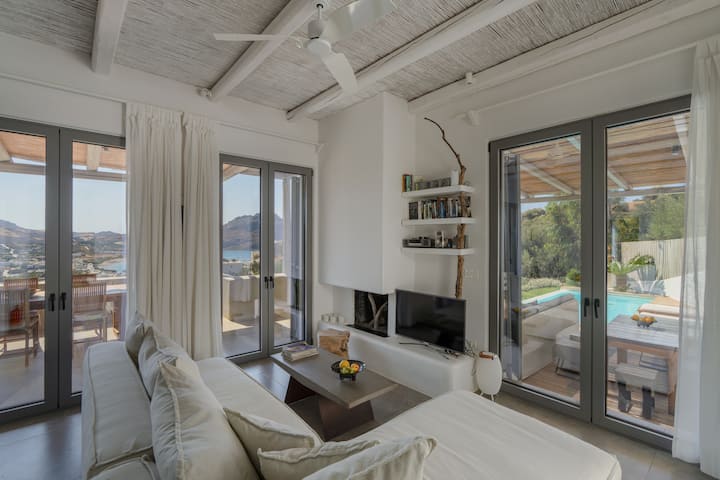 וילה בסגנון האי ניסוס עם בריכה ונוף לים