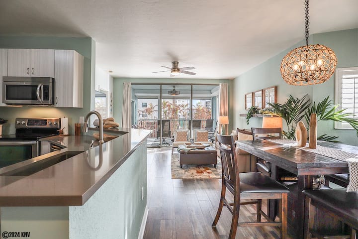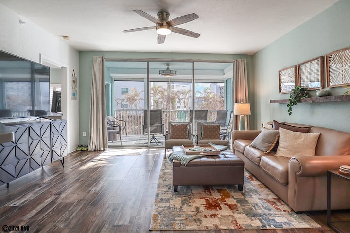 פתחו את דלת הכניסה ואתם מטופלים עם קונספט ממוזג, פתוח, חלל מגורים מלא שטוף שמש שעוצב באופן מקצועי עם כשרון חוף - ריצוף קרש עץ ויניל, תריסי מטע, תאורה מעוצבת ומאווררים. מרווח ומלא ברהיטים נוחים, בסלון יש טלוויזיה ענקית. יש ספה נפתחת לשני אורחים ללילה. פינת האוכל מכילה שולחן לארבעה. במטבח ששופץ לאחרונה, מאובזר במלואו, יש מדיח כלים, מיקרוגל ומשטחי גרניט נהדרים - כלי אוכל, כלי בישול וכלי שולחן כלולים לאירוח. חדר הכביסה נמצא ממש ליד המטבח ומתגאה במכונת כביסה ומייבש מלאים. בסמוך למטבח יש חלל עם מקומות ישיבה לנשפים ושולחן כדי ליהנות מכוס הקפה הראשונה בבוקר. הסלון בקומה הפתוחה מוביל לתכונה הטובה ביותר בדירה - מסך בלאנאי עם כיסאות נוח להירגע וליהנות מרוחות המפרץ.
