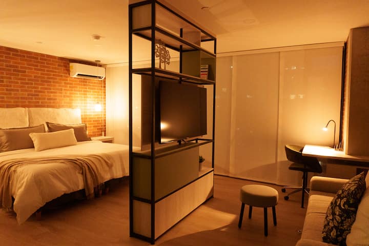 סוג לופט / אוויר / אינטרנט / טלוויזיה ענקית / וילונות