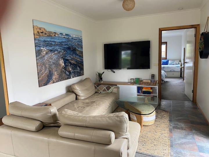 Cosy Coastal Hideaway – Walk to Beach + Fire Pit