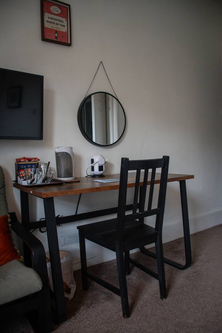 היכנסו לחדר חמים ומזמין המשלב נוחות עם תחושה של בית. חלונות גדולים נפתחים לנוף לגינה, ממלאים את החלל באור טבעי ומוסיפים אווירה מרגיעה. התחילו את הבקרים עם משקה חם ממתקני התה והקפה ותיהנו מארוחת בוקר חינם, ואז הירגעו בערב עם נטפליקס, Now - TV או Freeview.