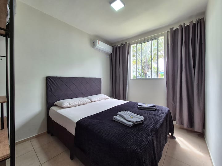 דירת חדר שינה אחד עם מיזוג אוויר, חניה ומטבח מלא.
