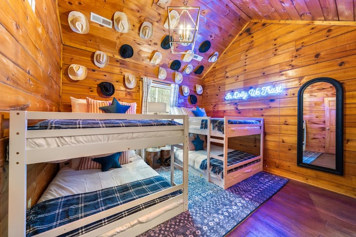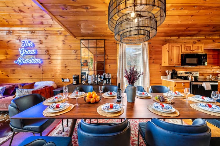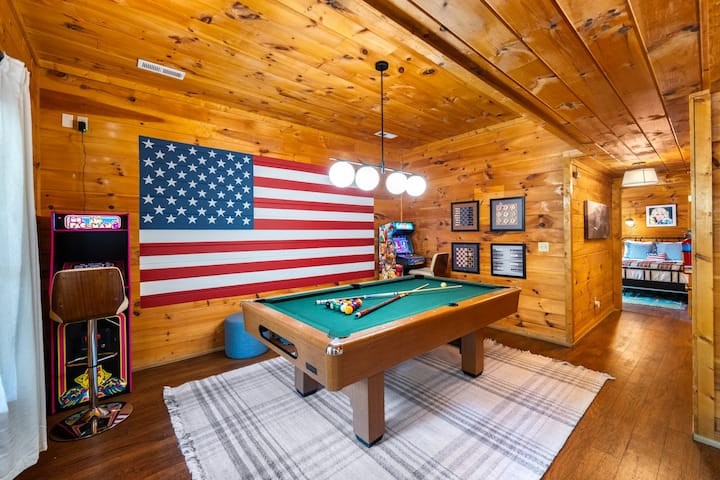 The Great American הוא בקתה מהממת עם 5 חדרי שינה ו -5 חדרי רחצה המיועדת לנוחות, רוגע וכיף. הבית שלנו, השוכן בסביבה שלווה אך במרחק דקות ספורות מהאטרקציות המובילות, מושלם למשפחות ולקבוצות המעוניינות לחוות את המיטב של הרי הסמוקי.