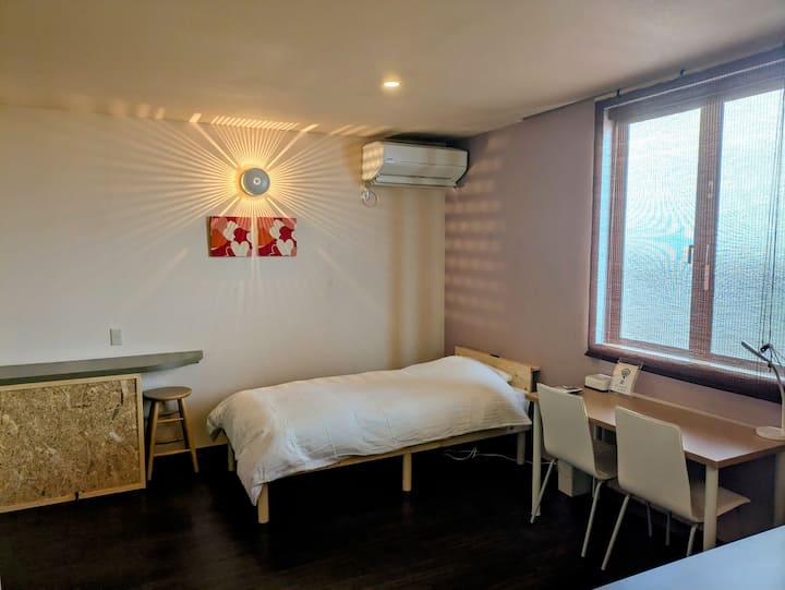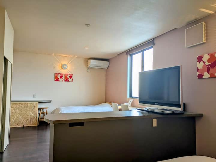 חדר 110 ניתן לשימוש על ידי 3 אנשים עם מיטה זוגית ומיטת יחיד