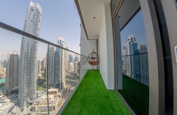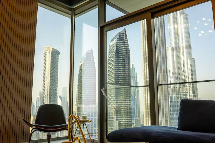 נופים מלאים של בורג' ח'ליפה. ליהנות מנופים מדהימים ללא הפרעה של הבניין הגבוה ביותר בעולם מהנוחות של הבית שלכם. 🌆