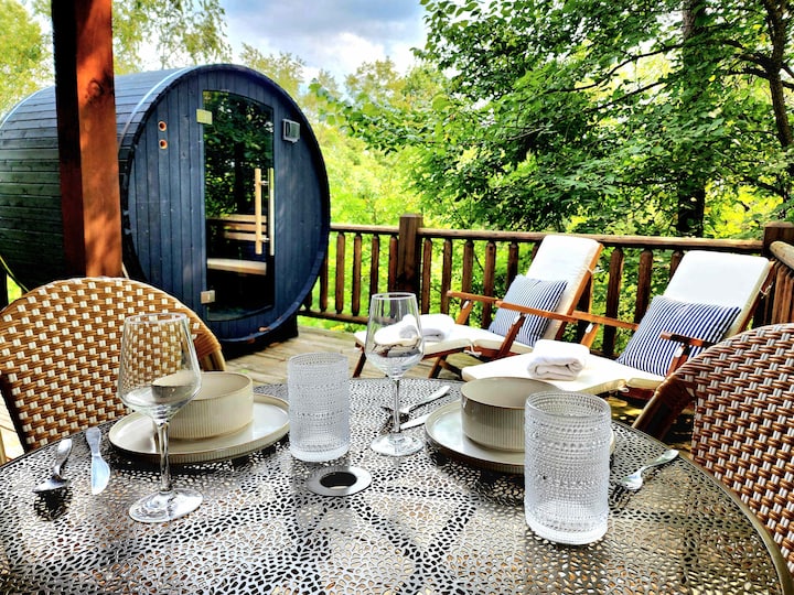 בקתה רומנטית על אגם לוגן עם ג'קוזי וסאונה