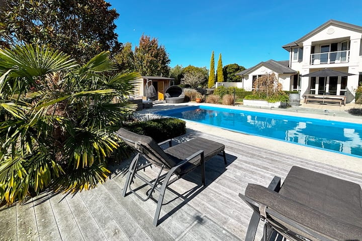 נווה מדבר פרטי מודרני ממוקם על 4 דונם דמויי פארק באוהוקה, צפונית לקרייסטצ'רץ'. מקום מפלט ידידותי למשפחות עם בריכת שחייה באורך 12 מ', ספא ושטחים מהממים. אידיאלי לחופשת הקיץ, לטיולי גולף או לפעילויות בחורף. מתאים ל-8 אנשים ב-4 חדרי שינה מרווחים, עם אפשרויות ל-12 אנשים לכל היותר. כולל 2 סלונים, משרד, חדר כושר ו-3 מרחבים חיצוניים. המטבח המודרני ופינת האוכל יכולים להכיל עד 12 אנשים. פריטים חיוניים לתינוקות זמינים. רק 22 דקות משדה התעופה, ליד חנויות, אפשרויות אכילה וחופים.