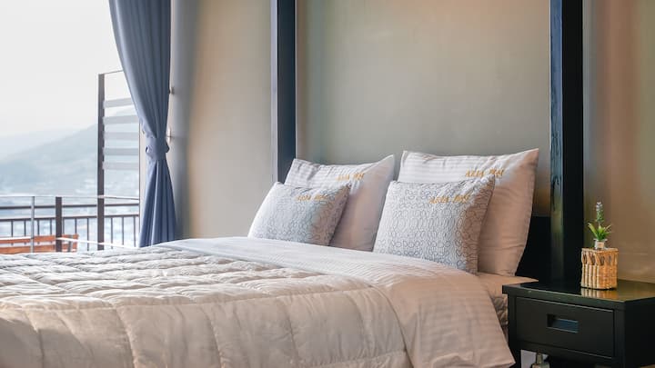 סוג סטודיו, סלון אחד + חדר שינה (מיטת קווין סייז אחת) + מטבח אחד + חדר רחצה אחד + מנגל פרטי