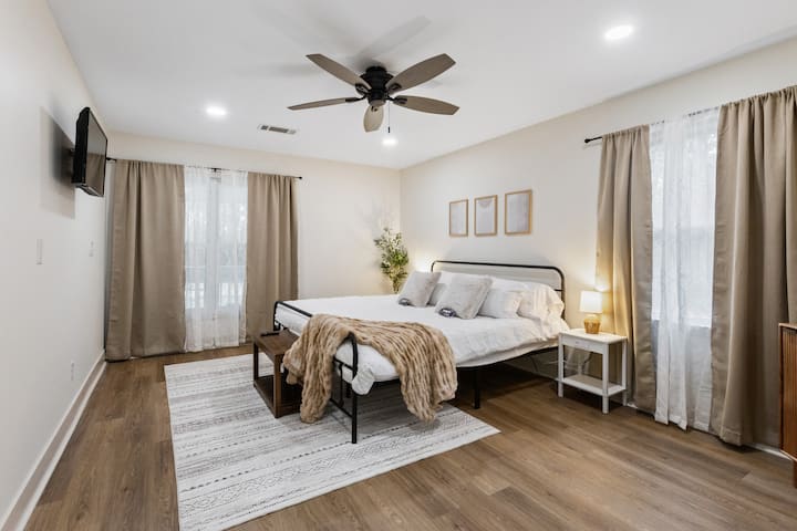תוכנית קומה פתוחה עם אביזרים מודרניים, מצעים יוקרתיים באיכות גבוהה לשינה נינוחה ומטבח מאובזר במלואו עם מכשירי חשמל יוקרתיים. להירגע מתחת לכוכבים בג'קוזי הפרטי ולהירגע ליד בור האש. תיהנו מחדר המשחקים לעבודה או למשחק. תתעוררו עם קפה הבוקר שלכם במרפסת המרוכסנת. 5.8 מייל למרכז טוסקלוסה (11 דקות) 7.2 מייל לאוניברסיטת אלבמה (14 דקות) 2 מייל לפאבלייקס (4 דקות) 3.7 מייל לנורת'פורט (8 דקות)