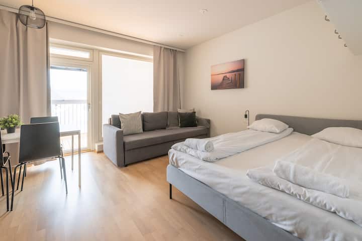 דירת סטודיו עם מרפסת ונוף לאגם