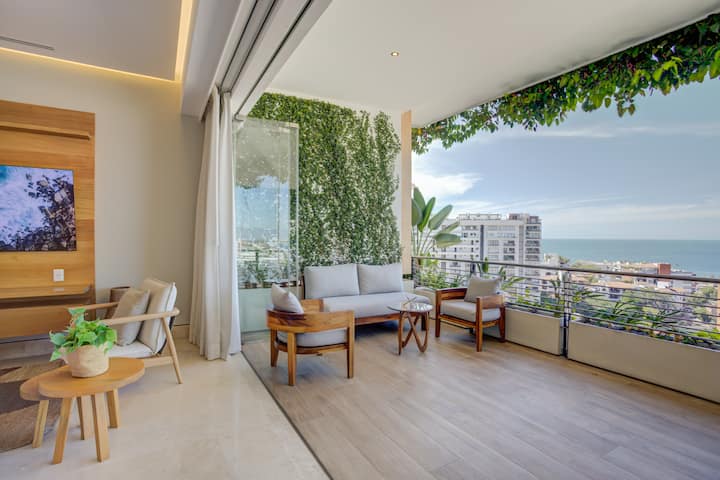 נוף אלגנטי לים של SohoPV, מרפסת ובריכת גג