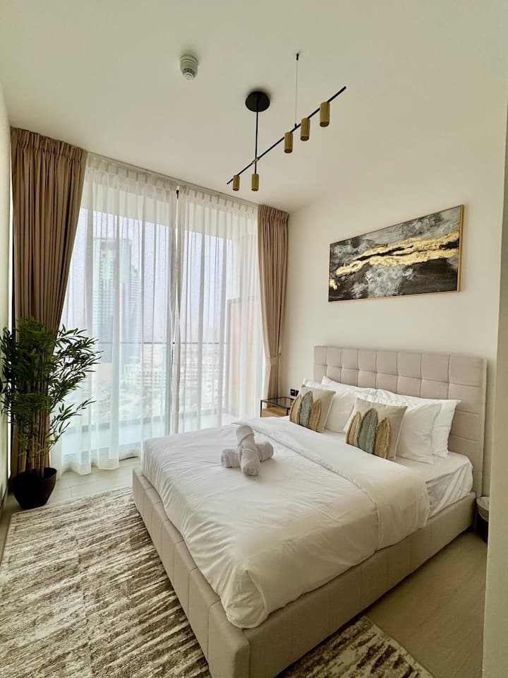חדר שינה אחד מסוגנן ומודרני ב-JVC | גישה לבריכה +