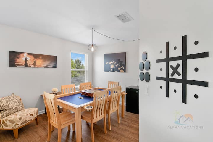 חדר משחקים נוסף ממוקם בקומה השנייה: כולל שולחן משחק/קלפים מותאם אישית עם מחזיקי שתייה, משחקים מרובים וצ'ק - אאוט במשחק המגנטי של הקיר המגנטי Tic - Tac - Toe!