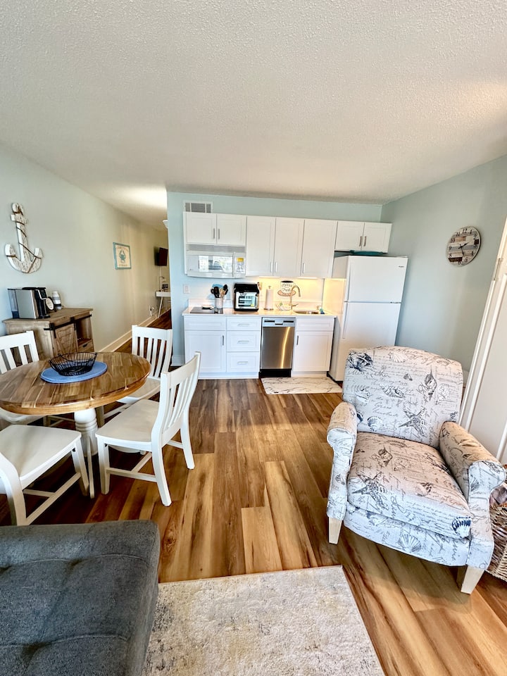 המטבח המאובזר מושלם להכנת ארוחות, וכולל מכשירי חשמל איכותיים הכוללים כיריים, תנור, מקרר, מדיח כלים, מייבש אוויר, מיקרוגל ומכונת קפה חד - פעמית. המטבח נפתח לפינת אוכל וסלון מוארים, שם תוכלו להירגע על ספה נוחה או לצפות בתוכניות האהובות עליכם בטלוויזיה החכמה בגודל 55אינץ '.