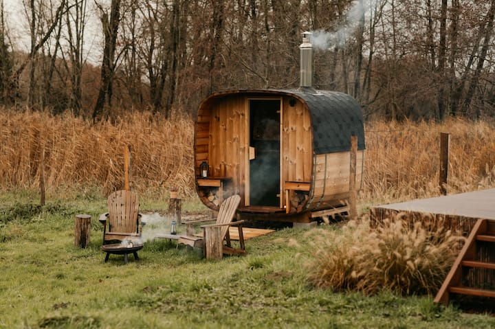 בפני בריכת בר, בקתת העץ והסאונה שלנו מציעות סביבה טבעית, נוחות יוקרתית ומחויבות אקולוגית, להפסקה רגועה ומרעננת.