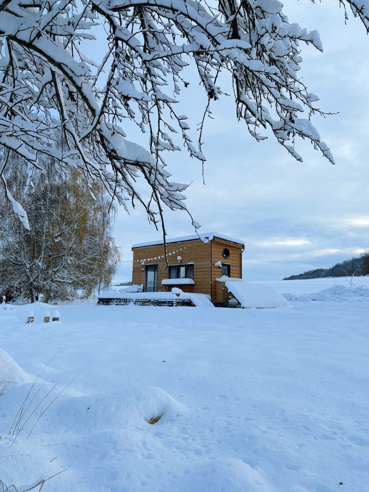 חוויה של חיים בבית הזעיר העצמאי שלנו במשך כמה ימים, הודות לפנלים הסולאריים ומיכל מי הגשם שלו. אין לו השפעה על סביבתו, שכן הוא על גלגלים ואין לו יסודות והשפכים מפונים הודות למפעל לטיהור שפכים. הוא נבנה בחומרים ידידותיים לסביבה (עץ ווז', בידוד עם ג'ינס ממוחזר...) והוא עוצב באחריות ומינימלי. הארוחות המוצעות בבקתה הן תוצרת בית ממוצרים עונתיים ומקומיים (מהגינה שלנו במידת האפשר) ולכל היותר אפס פסולת.