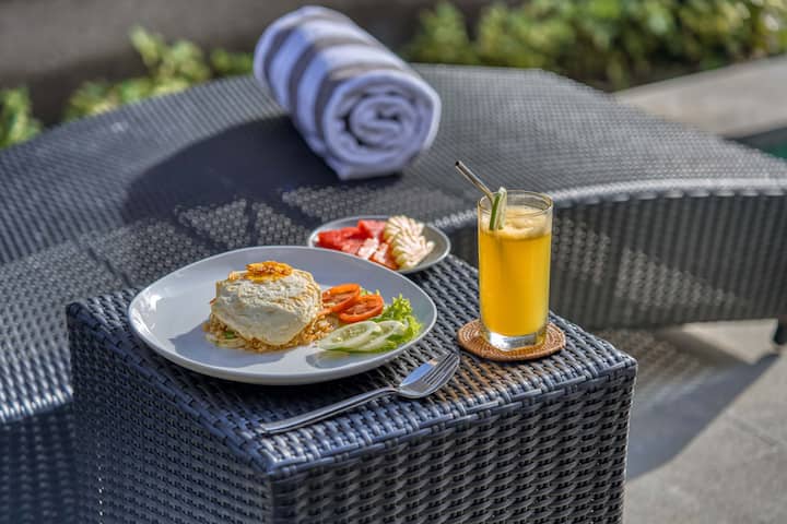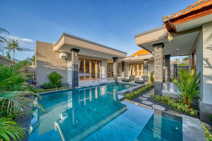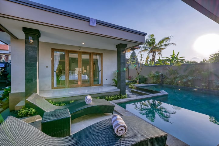 וילה עם חדר שינה אחד עם בריכה ומטבח משותפים