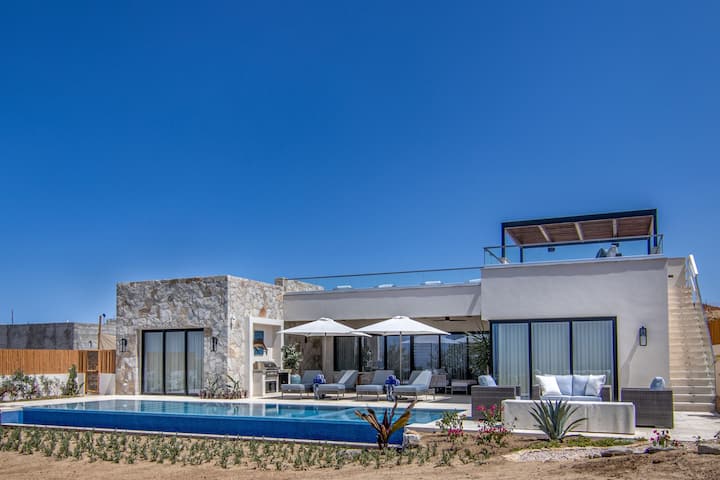 מרפסת הגג הרחבה מזמינה אתכם ליהנות מנופים פנורמיים של הנוף המחוספס של קאבו ומהערבים המוארים בכוכבים עם קוקטיילים ביד.