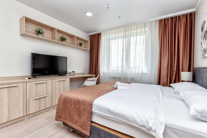 🏨 תקבלו את השירותים לאורח של מלון ואת הנוחות של דירה עם מטבח מאובזר. המקום הנוח שלכם במרכז אסטנה, בין האקספו לאנדרטת בייטרק!
