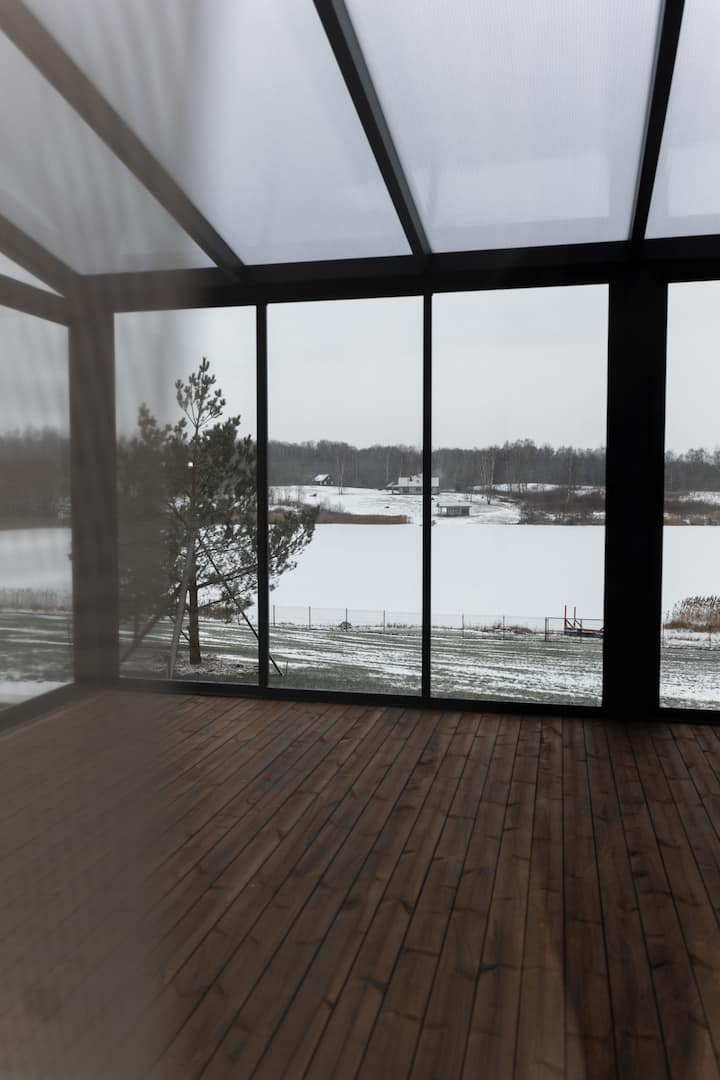 וילה על אגם Kerėpla עם ג'קוזי וסאונה