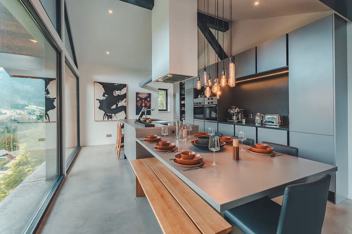 הבקתה האלפינית המפוארת הזו עם 4 חדרי שינה, 3 חדרי רחצה והקולנוע הפרטי שלה היא בסיס מושלם לחופשות סקי וקיץ משפחתיות או לקבוצות של חברים שמחפשים מקום מפלט מסוגנן.