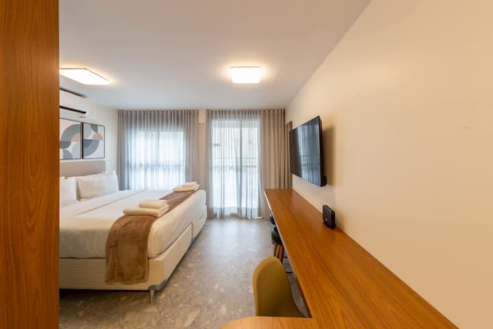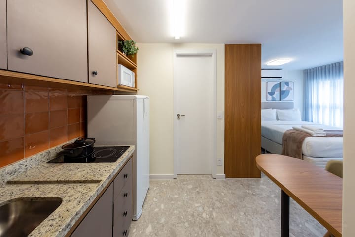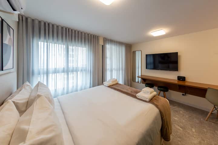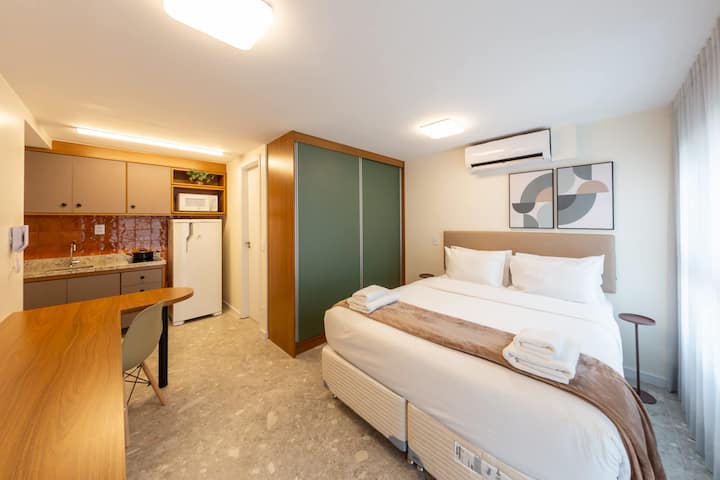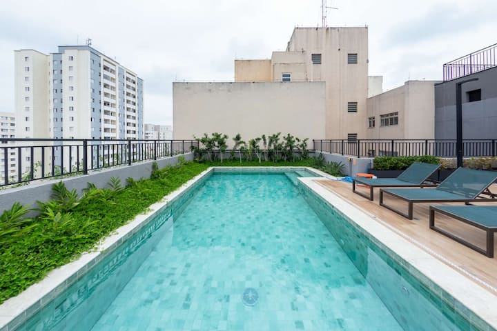 להתארח בסטודיו הזה במרחק 6 דקות הליכה לרכבת התחתית של סנטה צ'צ'ליה, מוקפת באפשרויות אוכל מצוינות כמו Moela Bar, Tabuleiro do Acarajé, Van Grogh Bar, Poor Juan ו - Pappo Trattoria, מושלם למי שנהנה מאוכל טוב וסביבה נעימה. רק 13 דקות מקניות פטיו היגיאנופוליס ונסיעה של 12 דקות למוזיאון הכדורגל כדי שתוכלו לטייל, לקנות או ליהנות. בבית הדירות יש בריכה, חדר כושר, חללי עבודה משותפים וכביסת OMO (בתשלום בנפרד).