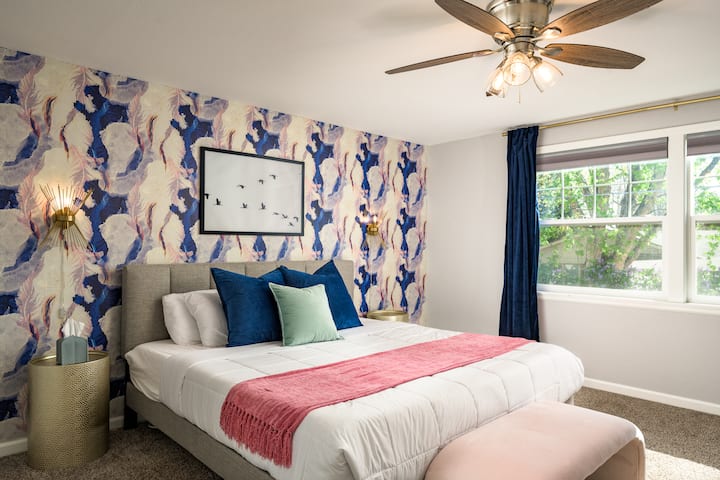 חדר שינה 3 - החדר המעוצב להפליא הזה כולל מיטת קינג סייז ועיצוב מקסימליסטי.