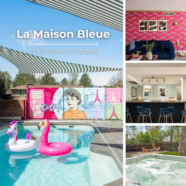 לגלות את La Maison Bleue: מקום מפלט מהמם למעצבים שמגדיר מחדש את הנסיעות הקבוצתיות! מקום המפלט הייחודי הזה משלב אסתטיקה נועזת עם נוחות יוקרתית כדי ליצור את הרקע המושלם לחופשה הבאה שלכם. כולל שירותים לאורחים כמו בריכה פרטית, ג'קוזי, חדר כושר, סאונה, קריוקי וחדר משחקים - הבית הזה מושלם למפגשים קבוצתיים. אמנם זה מרגיש כמו גן עדן פרטי, אבל אתם במרחק נסיעה קצרה ממרכז העיר ומההרים שמעבר לו. לסייר בעיר ביום ולחזור הביתה ליוקרה בלילה!